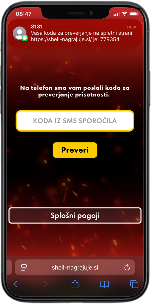 - Prejeti 6-mestno verifikacijsko kodo preko SMS sporočila in jo vnesti v za to namenjeno polje.