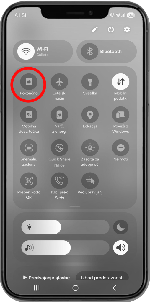 - Izklopiti samodejno obračanje zaslona (na kar je posebej opozorjen). To stori tako, da odpre spustni meni telefona in izklopi samodejno obračanje s klikom na gumb ključavnice.