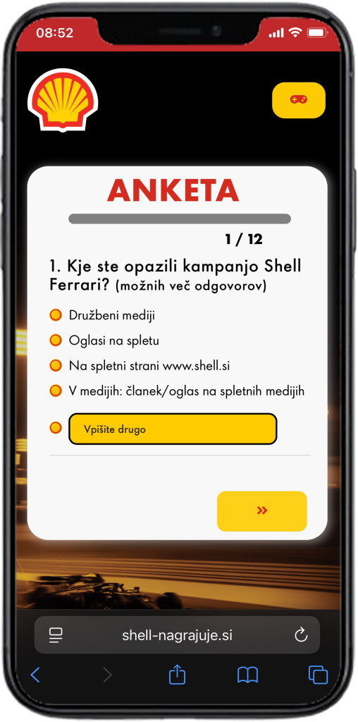 - Po prihodu v cilj izpolniti anketo s klikom na gumb Odpri anketo.